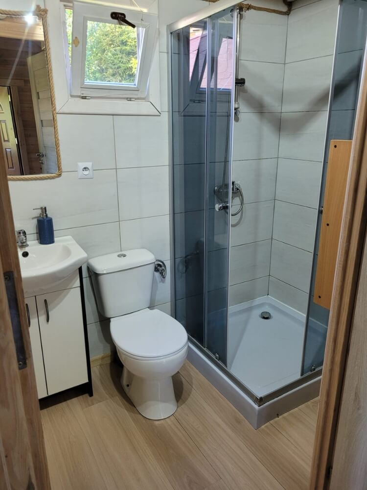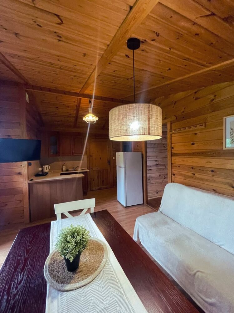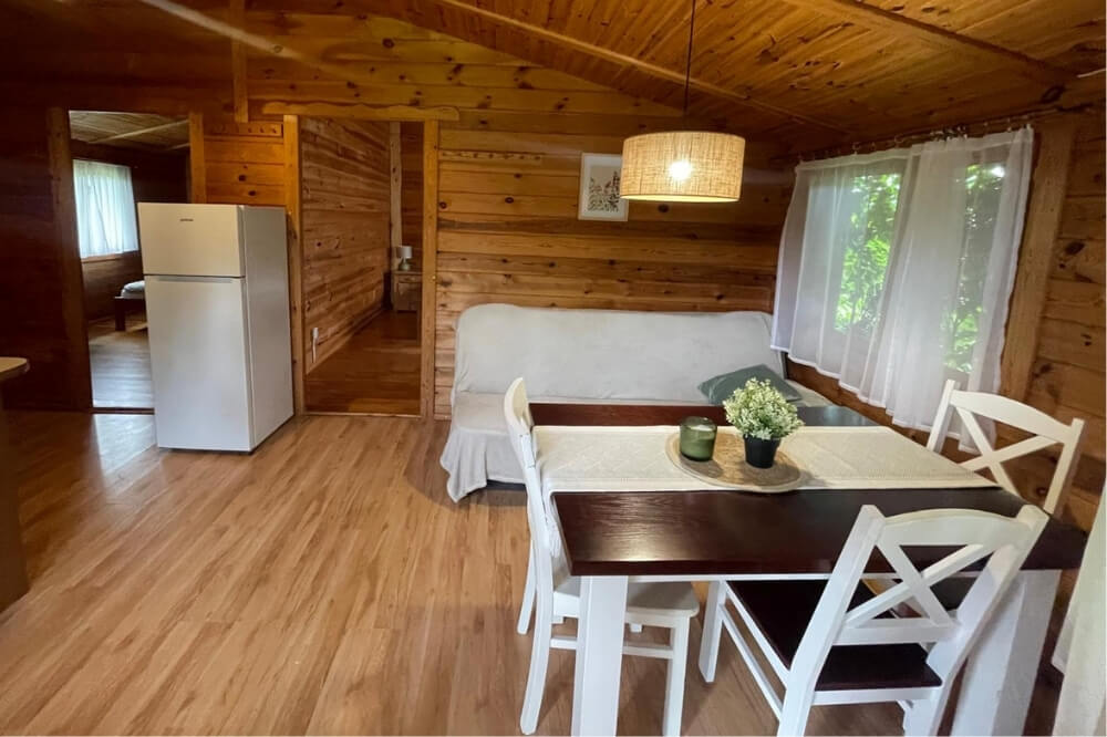 Każdy domek został urządzony tak, abyście mogli poczuć się swobodnie i jak u siebie. W środku znajdziecie: