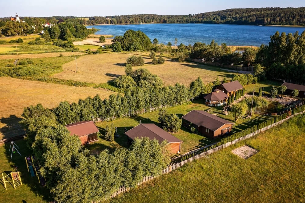to kameralne miejsce z 4 przytulnymi, letniskowymi domkami dla maksymalnie 6 osób, położone w Wielu, tuż nad jeziorem Wielewskim (I klasa czystości). Od wody dzieli Was zaledwie 150 metrów spaceru. Na gości czeka prywatna plaża z pomostem – idealna na poranną kawę, kąpiel czy zachód słońca.
