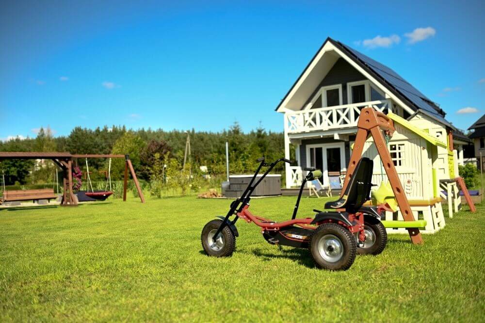 Do dyspozycji gości oddajemy pięknie zagospodarowaną działkę. Znajdziemy tu miejsce do grillowania oraz ławeczki do wypoczynku. Dla lubiących aktywny wypoczynek mamy trampolinę, huśtawki czy nawet bramkę do gry w piłkę. A przy samym domku znajduję się duże jacuzzi z podgrzewaną wodą – kto by nie chciał wieczorem napić się kieliszka wina wypoczywając w wodzie?