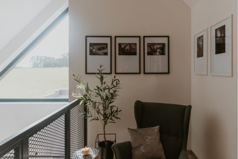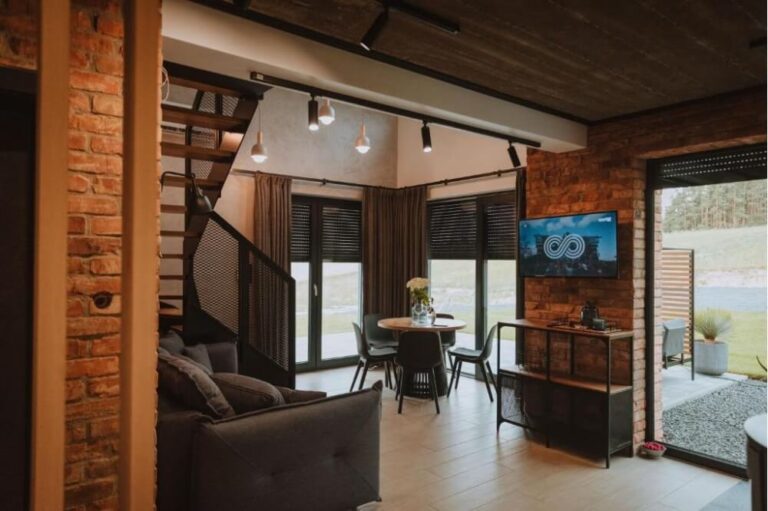To dobre miejsce do obserwacji jak dookoła żyje las, budzi się do życia łąka. Z tarasowego patio z kubkiem dobrej kawy w dłoni, z dużych okien sypialnianych, z przeszklonego salonu – tereny zielone grają tu pierwsze skrzypce. Zaznać tu możesz prawdziwego luksusu spokoju. Poranki, gdy człowiek budzi się w ciszy, pośród natury, pamięta się potem bardzo długo. Polecamy spacer nad pobliską rzekę, wędrówkę w lesie. Enklawa stanowi azyl w otoczeniu prawdziwej, polskiej, spokojnej wsi dla osób, które po prostu chcą pobyć.
