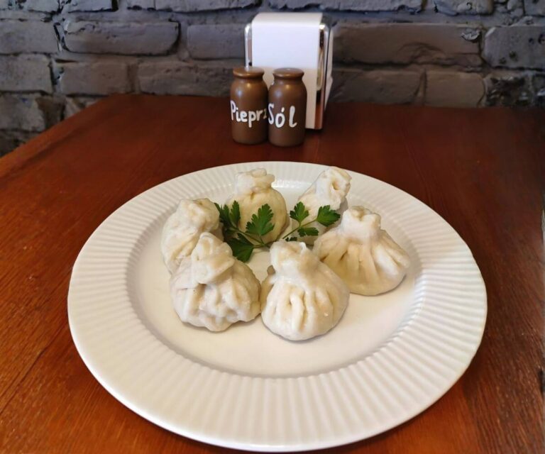 Wpadliśmy do restauracji i od razu wpadł mi w oko WOŁOWY Burger Derun – zamiast bułki są placki ziemniaczane, czego nigdzie w okolicy wcześniej nie widziałam, więc musiałam spróbować. Sam pomysł jest mega fajny i ma duży potencjał. Trochę szkoda, że nie ma sosów do wyboru – burger podawany jest tylko w sosie słodko-ostrym. Warzywa były dość zimne, jakby prosto z lodówki, przez co całe danie było jedynie lekko ciepłe. Myślę, że po dopracowaniu dodatków i w zestawie z frytkami kraftowymi mógłby być prawdziwym HITEM! Próbowaliśmy też pierogów z jagodami i słodkim twarogiem oraz kawy z ekspresu — niestety bez większego szału, też raczej do dopracowania. Za to ogromny plus za przytulny klimat lokalu i KOMINEK! 🙂