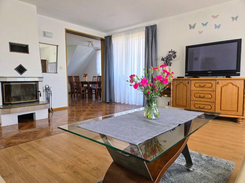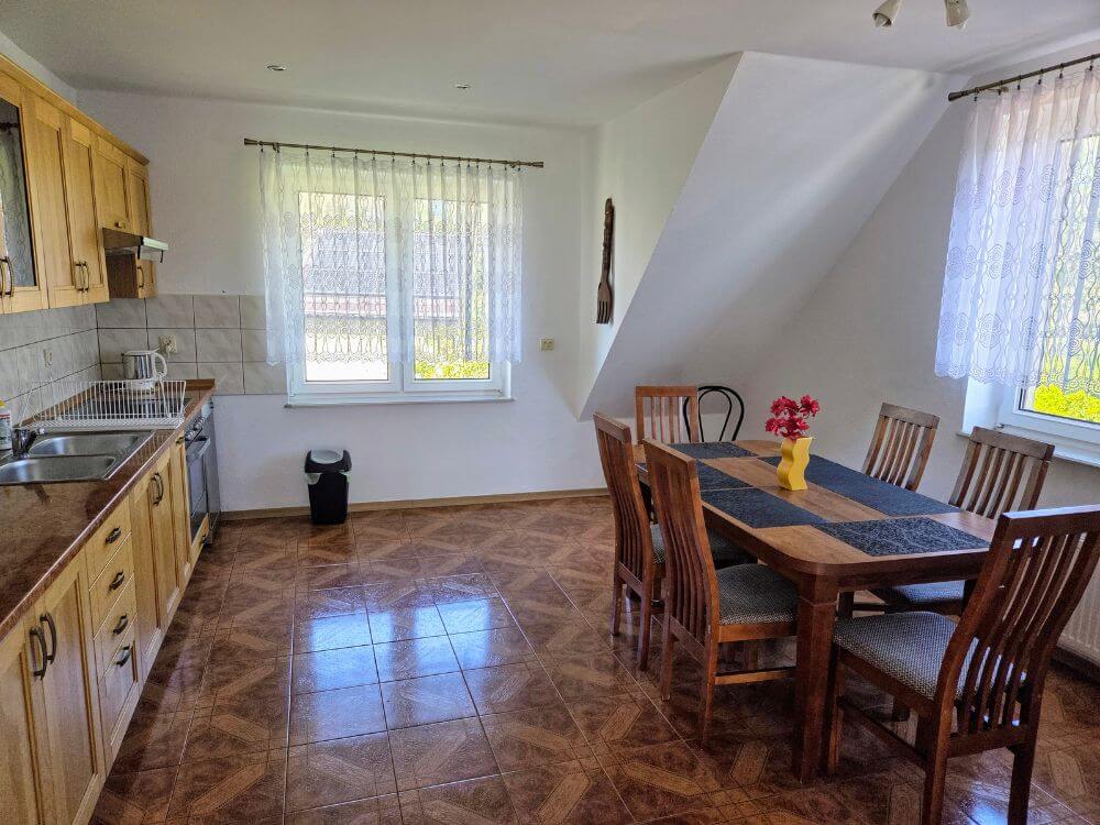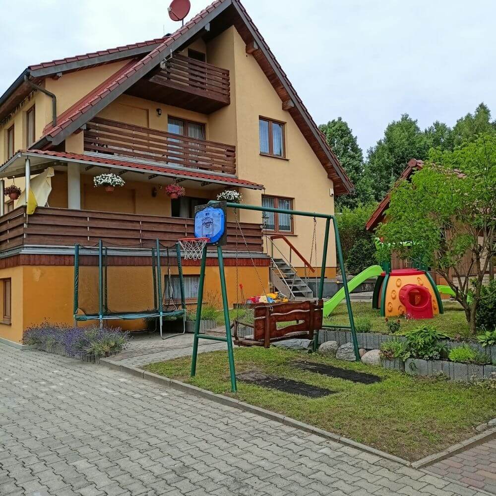 Jest to budynek podzielony na dwa niezależne apartamenty (z osobną kuchnią i łazienką). Każdy apartament jest przeznaczony dla 5 osób z możliwością wynajęcia dodatkowo poddasza z łazienką. Istnieje też możliwość wynajęcia całego domu!