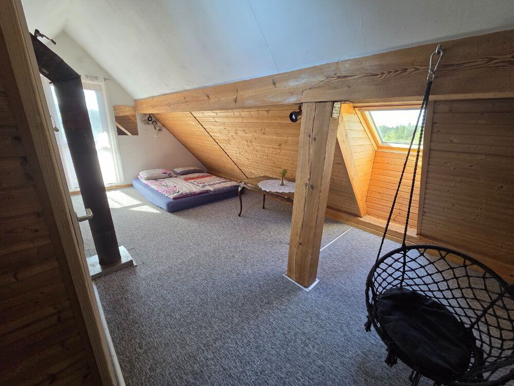Powyżej 5 osób możliwość wynajęcia poddasza - 35 zł za osobę.