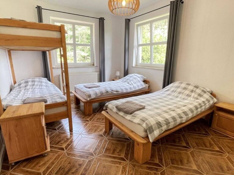 - 3 domy ośmioosobowe z trzema sypialniami,