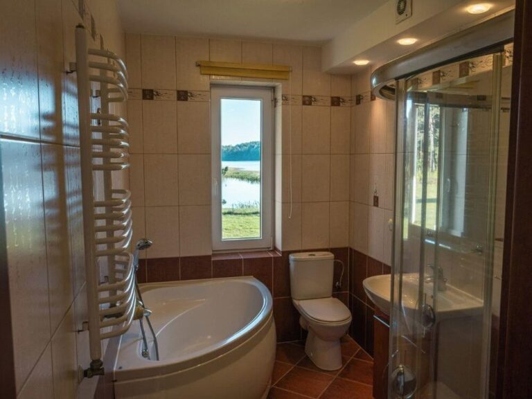 - Kąpiel: czysta woda i łagodne zejścia do jeziora zachęcają do pływania.